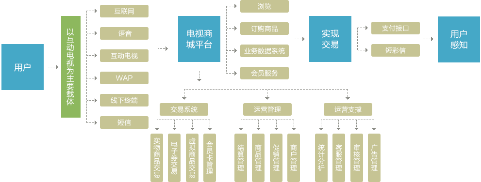 互联网、移动互联网、广电网三网的融合是技术融合、产业融合的新趋势,为电视交互购物发展提供了基础平台。全网数商站在了该业务的前沿应客户所需开发了电视交互购物平台,该平台满足了用户通过遥控器查看商品、购买商品、支付、查看公告、管理订单等功能;商家可以在电脑端发布商品、处理订单等信息;平台管理员在电脑端监管商品、订单、会员、供应商等数据。