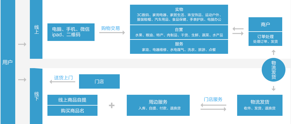 社区O2O电商平台,以互联网、移动互联网为技术手段,以客户的周边生活服务为基础业务,通过信息互通、交互、业务衔接,将线上电商平台和线下门店服务、收银、库存、物流仓储进行统一协调配置,提高客户的生活体验,提高线下门店的商业收益,提高本地商户的销售业绩,提高互联网商户的销售业绩。